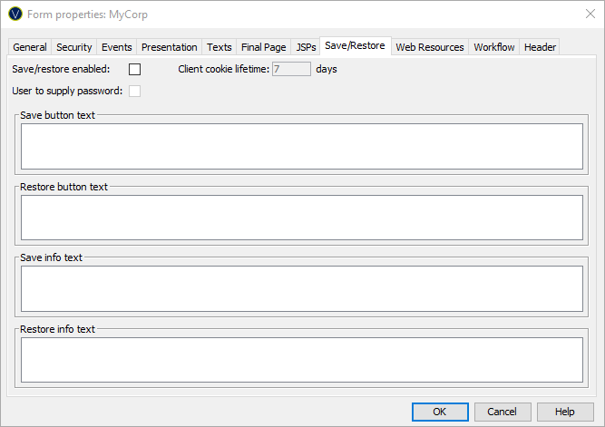 If this option is selected, the user will be prompted to supply a password when saving work. The same password must be used for the corresponding restore. |