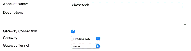 To communicate with an email server over a Verj.io Gateway Tunnel check the Gateway Connection check box. The configuration options then change accordingly.