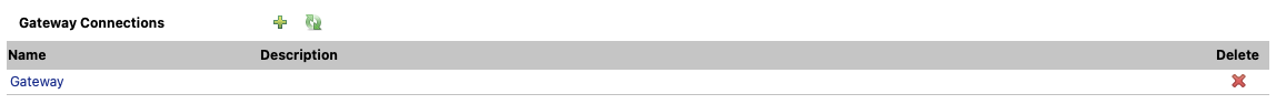 Currently configured Gateway connections are listed here. They can be edited by clicking on the name, new ones added and existing ones deleted.